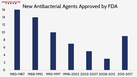 Earlier this year, the World Health Organization released a report demanding urgent action against antimicrobial resistance. The report warned that, without action, drug-resistant diseases will account for 10 million global deaths per year by 2050. While some academics say totally defeating microbial resistance is impossible, it is essential to “keep pace” by limiting the misuse and overuse of antibiotics and encouraging the continuous development of new antibiotics. The low return on investment in antimicrobial development, as discussed in a recent Weekly Checkup, resulted in a large decrease in newly approved agents in the late 1990s and early 2000s, but the Food and Drug Administration has been working with industry to change this trend in recent years. While there has been an increase in approvals in recent years, experts worry this uptick still is not enough to curb the current trajectory of antimicrobial resistant infections and that greater incentives need to be put in place to encourage the development of new agents.